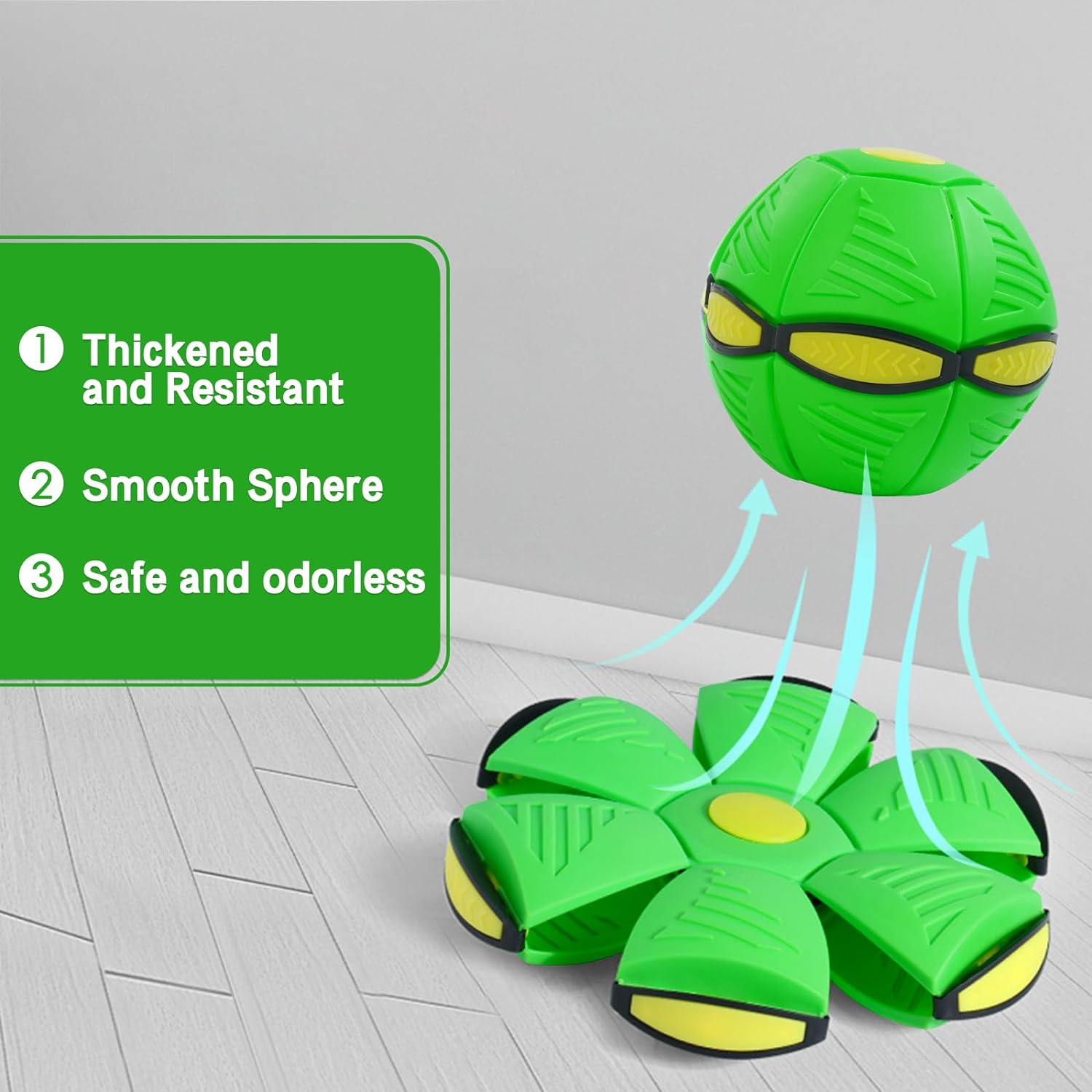 Colorful and Interactive: Bright green and adaptable from ball to frisbee for endless fun.